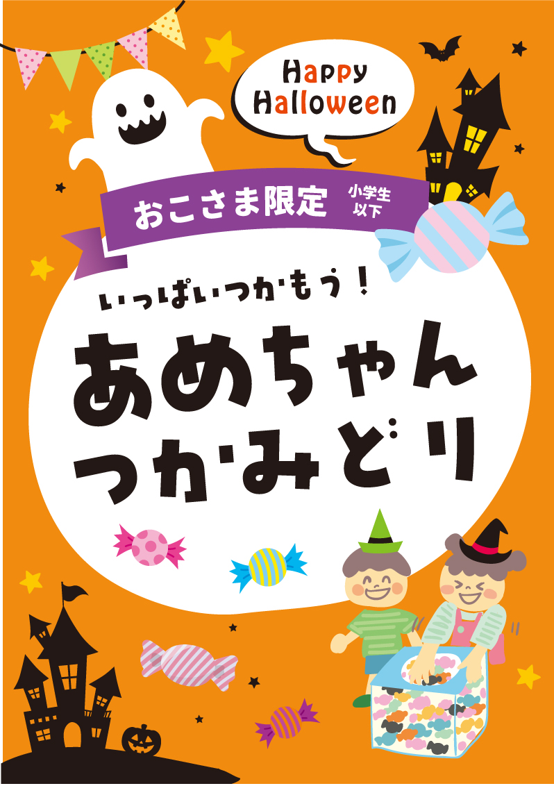 2025.10.14 ☆HAPPY HALLOWEEN☆あめちゃんつかみどり いつもご来店ありがとうございます。10月はハロウィーンということで小学生以下のお子様限定で『あめちゃんつかみどり』を開催しております!(^^)!「お兄ちゃんすごーい!」「そんないっぱいとれていいなぁ」「それつかみすぎ!」などの可愛らしい会話がとびかうこどもたちのテンションのあがるイベントとなっております(^O^)/